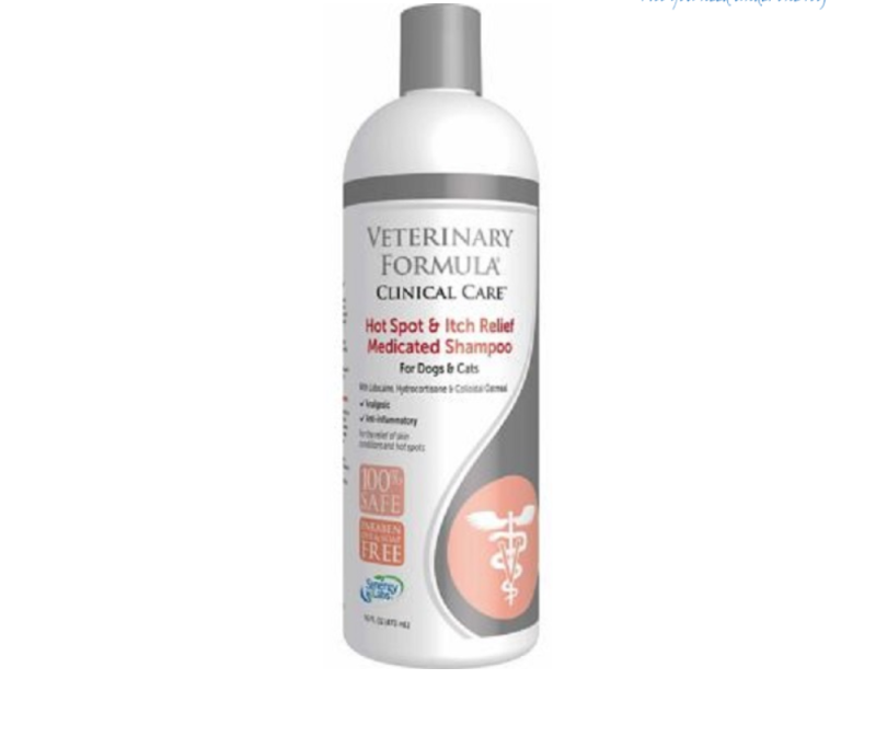 • Veterinary Formula Clinical Care Hot Spot & Itch Relief Shampoo was scientifically formulated with hydrocortisone and lidocaine to effectively relieve itching, scratching and pain due to hot spots and other skin irritations. Effectively calms inflamed skin & irritated skin while discouraging severe chewing & gnawing. For the relief of dermatological skin conditions and associated discomfort.