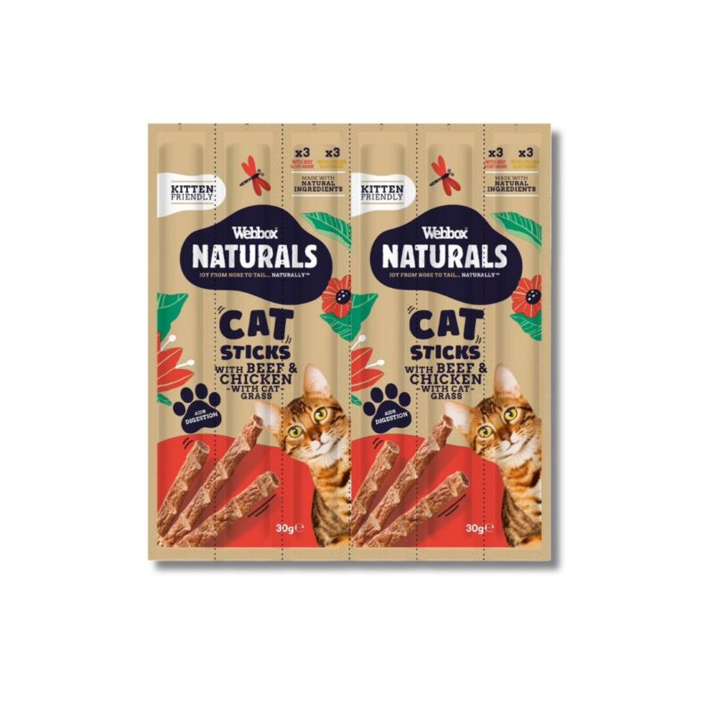 Webbox Naturals Cat Treats Sticks with Cat Grass Beef & Chicken